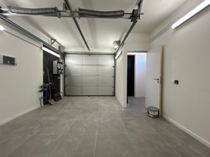 Gelijkvloers: Inkomhal met trap naar verdieping, garage (elektrische sectionale poort).