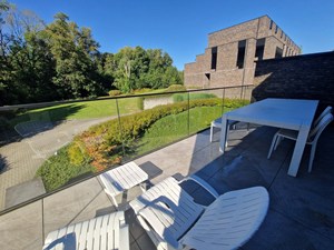 ! IN OPTIE - HUUROVEREENKOMST IN OPMAAK !Recent energiezuinig duplex appartement (132 m²) in hartje Keerbergen op wandelafstand van alle faciliteiten. Het appartement heeft een bureau (ingericht met kasten), een hyper uitgeruste semi-open keuken, 2 slaapkamers, 2 badkamers, 2 toiletten en twee zonneterrassen (zuidwest gericht) van ca 20 m². Mooi uitzicht op de gemeenschappelijke tuin en omgeving.