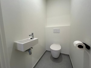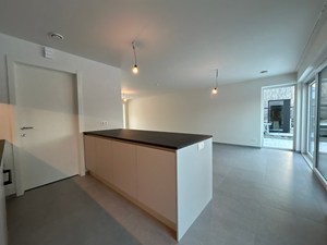 Binnen word je verwelkomd in een lichtrijke leefruimte met een open, ingerichte keuken. Aansluitend bevindt zich de praktische berging. Via de inkomhal heb je toegang tot het gastentoilet en de trap naar de verdieping.