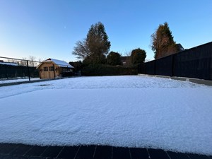 Achtertuin met terras en tuinhuis. (zal geplaatst worden in februari '26)
