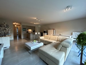 Inkomhal (vestiairehoek, videofoon), living (schuifraam met hor naar terras), open keuken (ijskast met vriesvak, combi-oven, dampkap, keramische kookplaat, aanbouwkasten, kookeiland met vaatwasmachine), bergplaats (aansluiting wasmachine, gasketel, zekeringenkast), nachthal, badkamer (inloopdouche, lavabo, spiegelkast), toilet, slaapkamer 1, slaapkamer 2.
