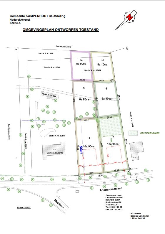Het perceel zal nog definitief opgemeten worden door Landmetersbureel Dekrem. De kosten (850,00 € + 21% BTW) zijn ten laste van de koper, die ook de kosten in de verkavelingsakte dient te dragen.