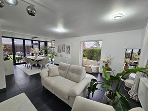 Ruime, vrijstaande woning met 3 slaapkamers, 2 badkamers, garage en mooie, ingerichte tuin. De woning werd in 2019 praktisch volledig gerenoveerd en beschikt over alle moderne comfort. Een extra troef is de achterbouw waar er zich nog o.a. verschillende bureauruimten bevinden. Goede verbindingen met privaat en openbaar vervoer door zijn ligging nabij het treinstation van Haacht en de N21. EPC-score: 167 (label B - geen renovatieplicht). Oppervlakte: 1.194m². Oriëntatie terras: oosten. Vg, Wg, Gmo, Gvkr, Gvv. P-score: A / G-score: A. Zoek je een ruime woning die instapklaar is en ook ruimte biedt voor jouw vrij beroep, dan is deze woning zeker een bezoekje waard!INDELING :