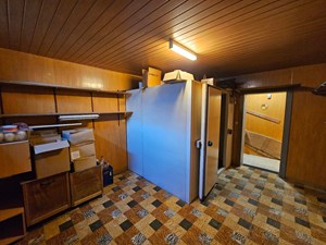 Winkelruimte, living/zitplaats, keuken (vaatwasmachine, roestvrije spoelbak met afdruipvlak, inductiekookplaat, dampkap, ijskast), sas (trap naar kelder en verdieping), berging (koelcel), zijbouw (diepvriescel), bergplaats (diepvriescel), vroegere bakkerij (koelinstallatie, luik stockagezolder, ovens bakkerij), wasplaats/stookplaats (stookketel anno 2012 met boiler, douchecabine, kitchenette, aanbouwkasten, aansluiting wasmachine en droogkast), bergplaats (bovengrondse stookolietank).