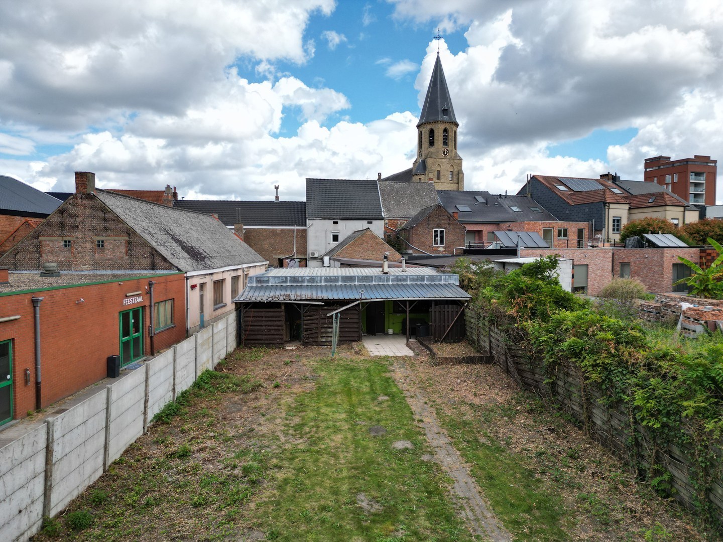 Erfdienstbaarheid aanwezig aan de rechterkant van het perceel.