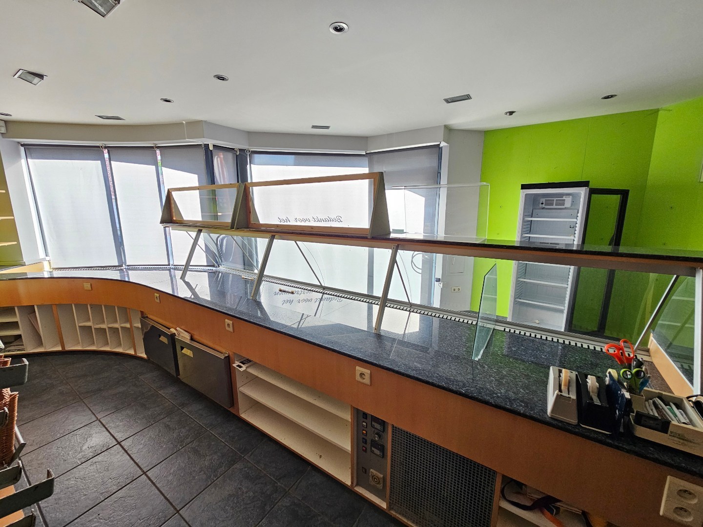 De winkelruimte is voorzien van een toog bekleed in graniet en elektrisch bestuurde raamdecoratie. Het buitenschrijnwerk van de winkelruimte is voorzien van glaspaneel verwarming. Airconditioning in de winkel, living en slaapkamer. Alarmsysteem met bewegingsmelders. Camerabewaking. Centrale verwarming op stookolie met convectoren.
