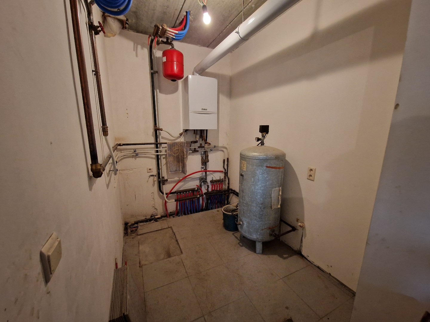 Centrale verwarming op aardgas met radiatoren. Condenserende gaswandketel van het merk Vaillant. Voorzieningen voor keuken en badkamers (water - afvoer) geplaatst.