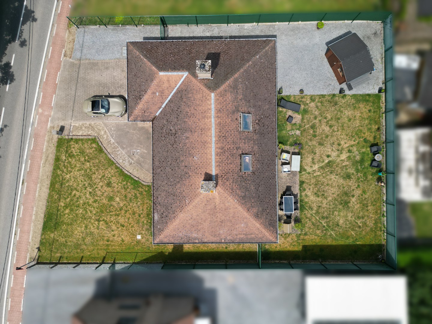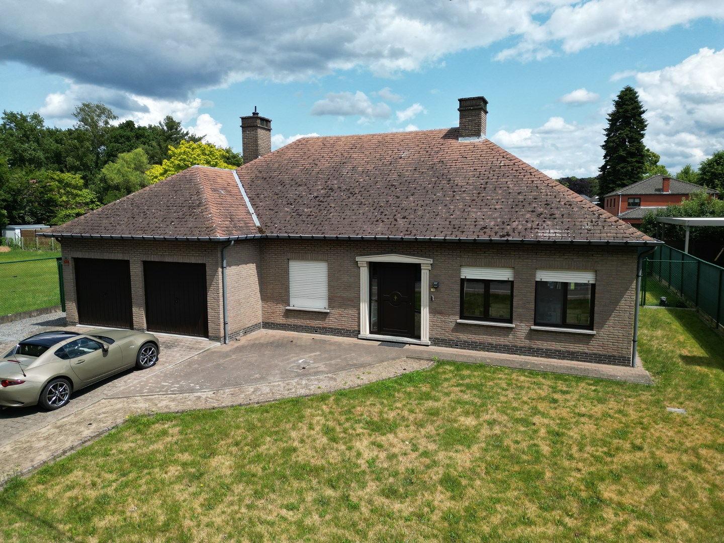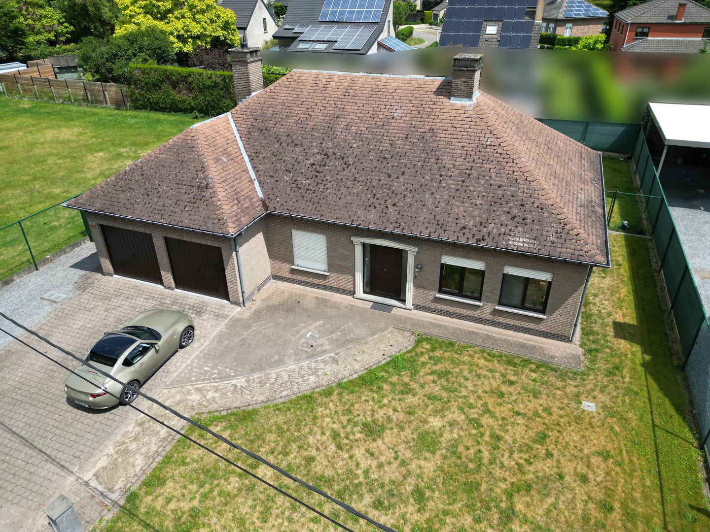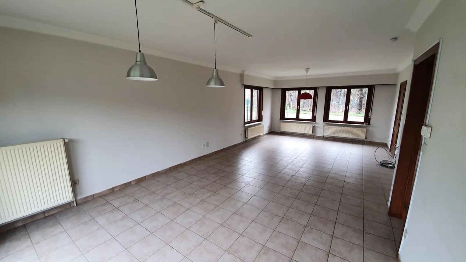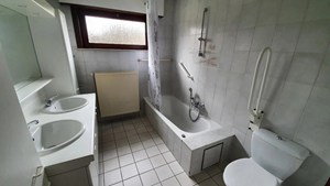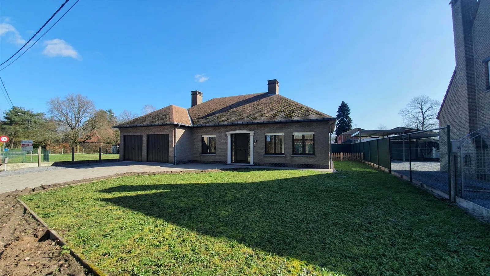 Inkomhal, living (schuifraam naar terras), keuken (buitendeur, heteluchtoven, microgolfoven, inductiekookplaat, dampkap, vaatwasmachine, roestvrije spoelbak met afdruipvlak - foto op website van voor renovatie), nachthal, toilet, slaapkamer 1, slaapkamer 2, slaapkamer 3, badkamer (inloopdouche, wc, 2 lavabo's in meubel, aanbouwkasten - foto op website van voor renovatie), dubbele garage (2 houten kantelpoorten, regenwaterpomp, watermeter, condensatiegaswandketel met boiler, uitgietbak, installatie elektriciteit, toegang kruipkelder, trapluik naar zolder, aansluitingen wasmachine en droogkast).