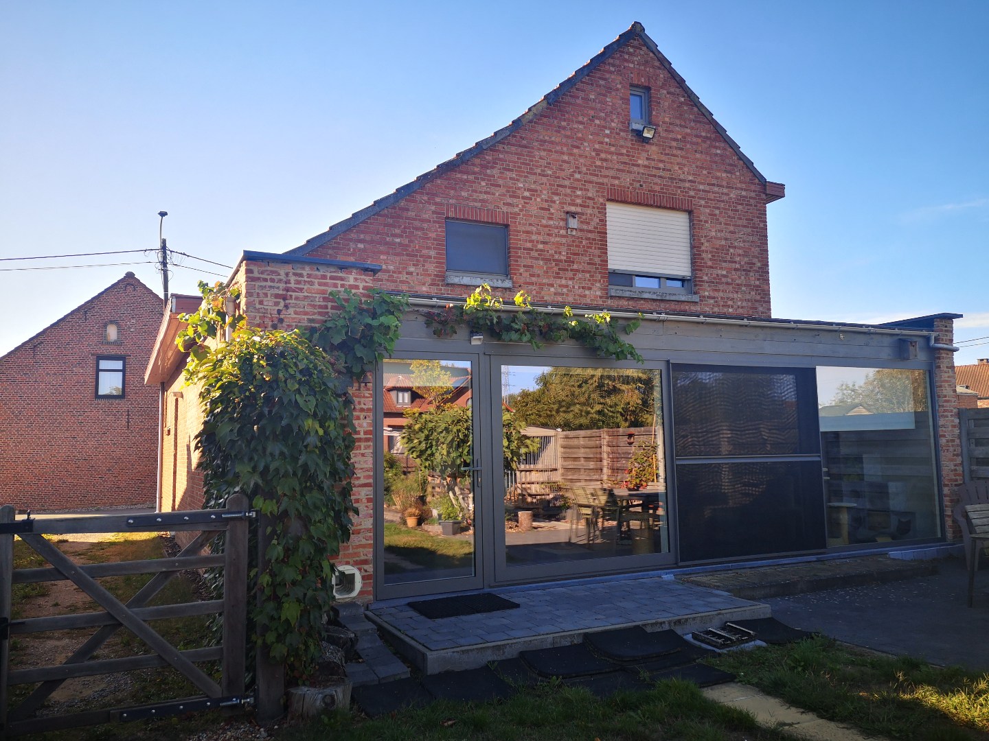 De woning telt 2 slaapkamers en is in de periode 2010-2014 volledig gerenoveerd, waardoor het van alle moderne gemakken is voorzien. Alleen de badkamer dient nog verder afgewerkt te worden (voorzien op de eerste verdieping). In de bewoonbare oppervlakte van 175 m² is er een ruime veranda met open zicht op de tuin en een open keuken, ingericht met alle toestellen.