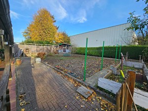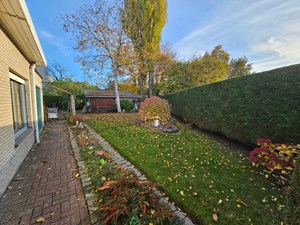Garage (installatie elektriciteit, automatische sectionaalpoort), stookplaats (hoogrendementsketel, watermeter), kelderberging (trap naar verdieping en achtertuin, keramische uitgietbak).