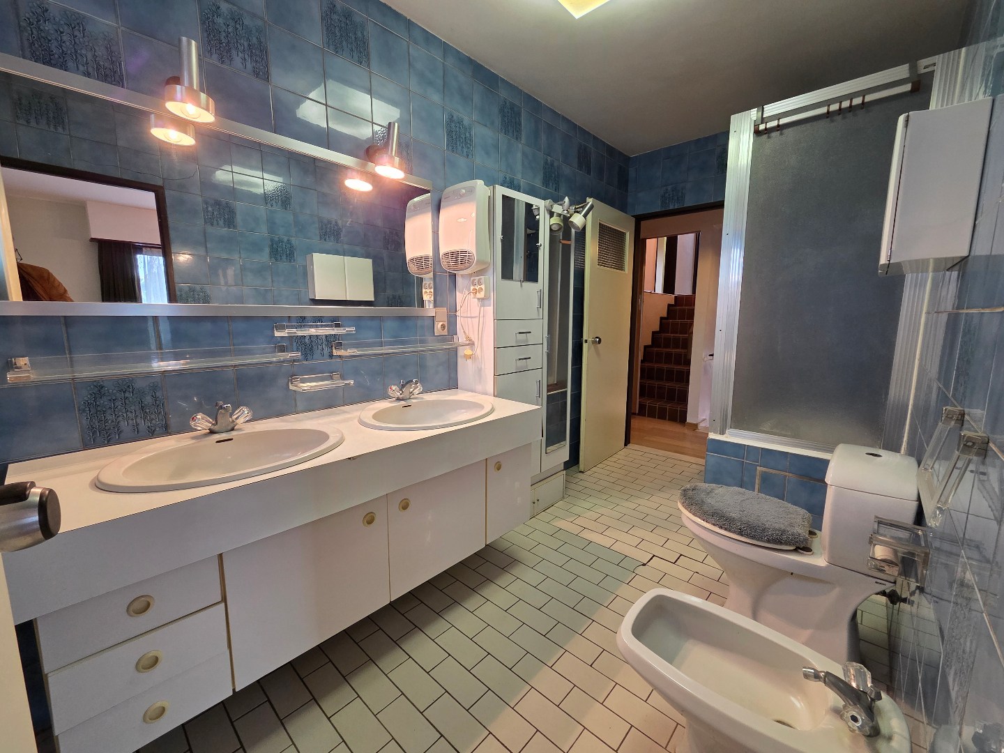 Op V1 een overloop met 3 slaapkamers, twee badkamers en 2 toiletten.